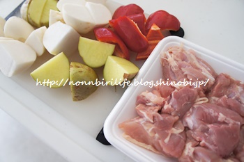 この日は、かぶとパプリカとじゃがいもと鶏肉。