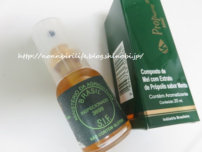 原材料は・・・蜂蜜、プロポリス、アルコール蒸留水、ミント