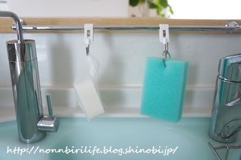 最初はね、クリップにスポンジを挟んでいたんだけれど、スポンジに跡がついてしまうし、