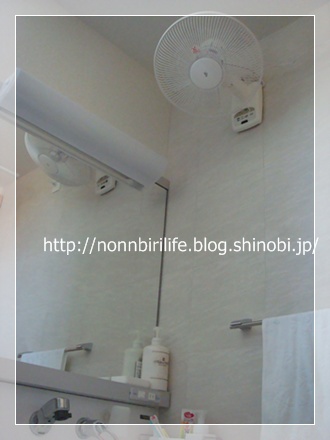 なにはともあれ? 洗面所のスペースを占領しない壁付け扇風機は、この時期とっても重宝です^^