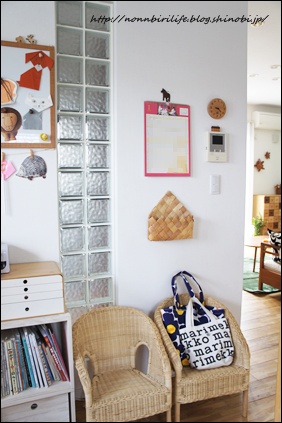 今はなにも入っていませんが、壁の↑あのカゴがそうです^^