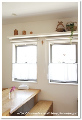 レースのカーテンを外し、丈の短いカフェカーテンに。