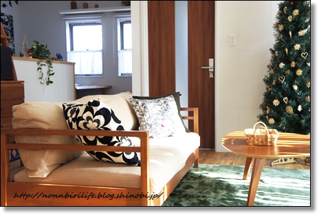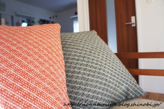 ソファのクッションもウールのものに替え冬支度。