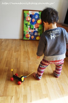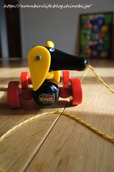 ヒモを引っ張り、リビングをぐるぐるとお散歩。