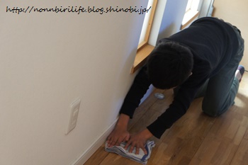 長男・次男はクリスマスツリーのために!?せっせと床ふき。