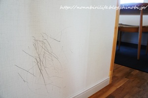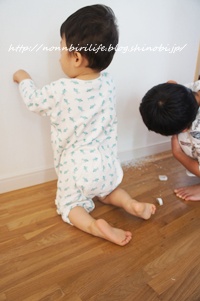 三男、いつの間にカゴから鉛筆を取り出して壁にお絵かき・・・
