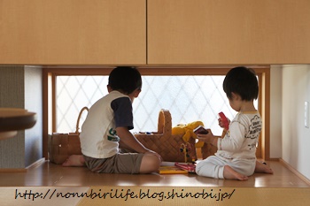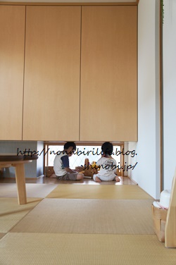 わざわざ和室の押入れの下におもちゃを運び、