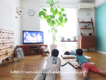高校野球に釘付けな長男・次男。