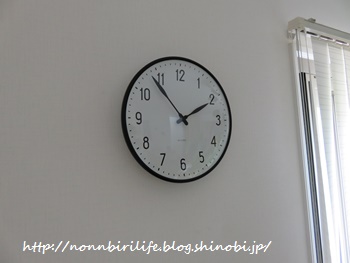リビングの壁に黒いフレーム、黒い数字の時計♪♪♪っと。