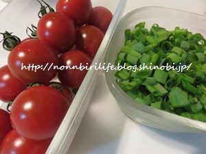 これまた前日の夜に薬味のネギを刻み。