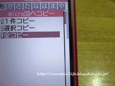 ガラケーで操作し、電話帳の全てをmicroSDへコピーする