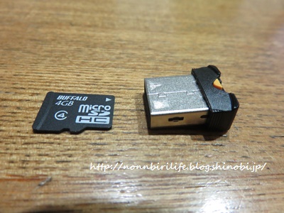 ガラケーからmicroSDを取り出し、USBメモリーアダプターを使い、