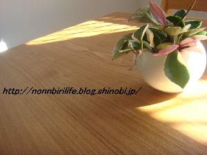 新しくなったダイニングテーブルに飾っているグリーンはサクララン♪
