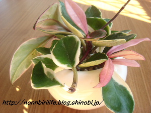 我が家にきたサクララン、すでにピンクの葉が混じっています^^v