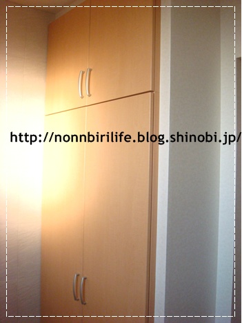 収納の右側は、洗面所のドアがあります。