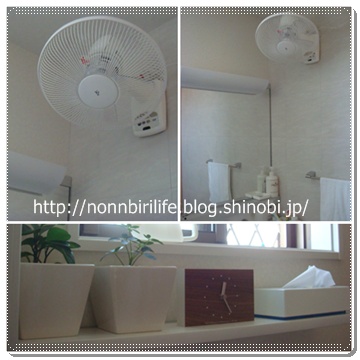 なにはともあれ? 洗面所のスペースを占領しない壁付け扇風機は、この時期とっても重宝です^^