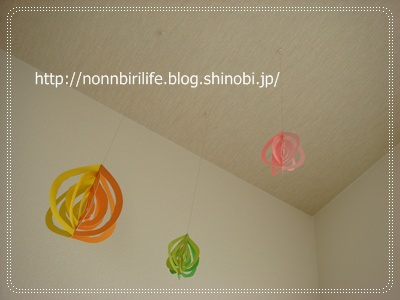 この本の表紙のしずくのモビール。 画用紙を買って、ハサミ&カッターで切って、ボンドで貼り付けて作りました~。 ハロウィンのモボールも*^^* 夜は影絵も楽しめるー。 部屋の角に飾るといい感じ★ ↑これをハサミでチョキチョキ&カッターで切り抜き。 中のカラフルな飾りはボンドを使って糸とくっつけます。 モビールは糸を通して、ニンジャピンで固定しました。 画鋲よりも穴の跡が目立ちません^^v (詳しくはショップの説明を↓)
