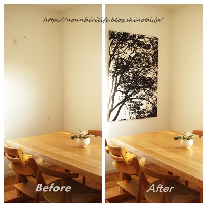 ダイニングのこの壁、飾る前は、なんにもなくて殺風景でした。