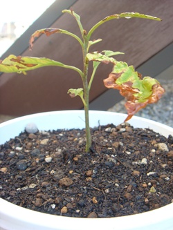 大きくはなったものの、先日の台風後に葉っぱが茶色に・・・><