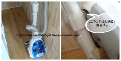 うちの掃除機、立てて収納するには、