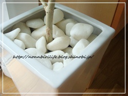 植えたあとは土の表面に白い石を置きました。