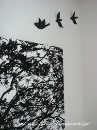 ファブリックパネルの上に鳥さんを♪