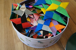 シュリケンっていっても長男が折り紙で作ったもので