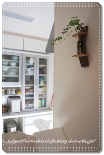 リビングとダイニングの間の壁には木製一輪挿しが。