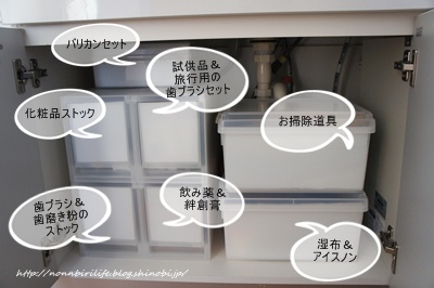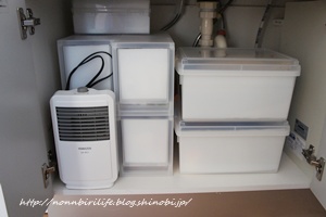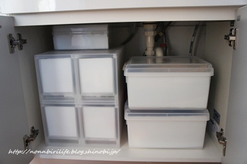 右側にはホームセンターで買ったフタ付プラケースを2段。
