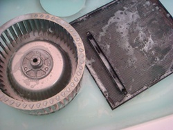 洗浄後の画像、下のほう、塗装がめくれたようになっていますが