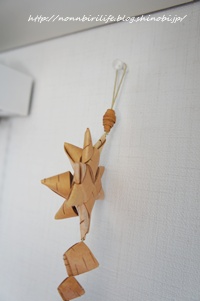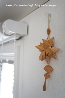 白樺の飾りつき星のオーナメントです。