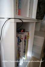 ブラブラなるのでさりげなく?カラーボックスの角に挟んでます。笑