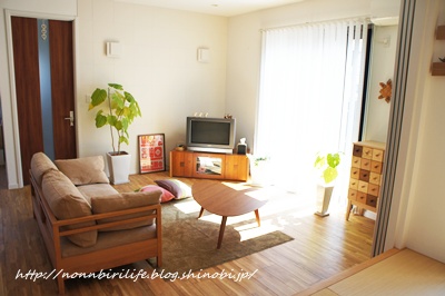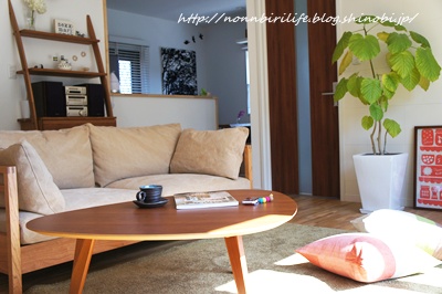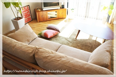 ベージュにしたらリビングの色のトーンが合ってきた、というか