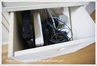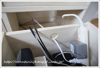 電源タップを使うことで、コード類はこの引き出し内にまとめました。