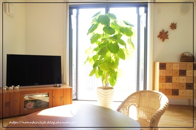 (外に見えてるグリーンはウンベラータ。ウッドデッキにて日光浴中