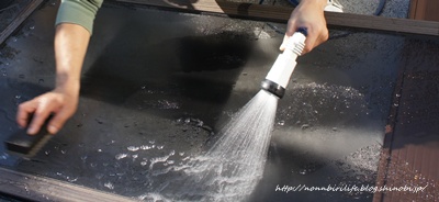 オット→・網戸を外し、洗い、干し、乾いたら元に戻す