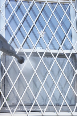 格子のある拭けない窓だって高圧洗浄機を使えば簡単キレイ