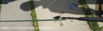 (緑のがそう)をノズル先端にしばりつけて全体の長さを長くして